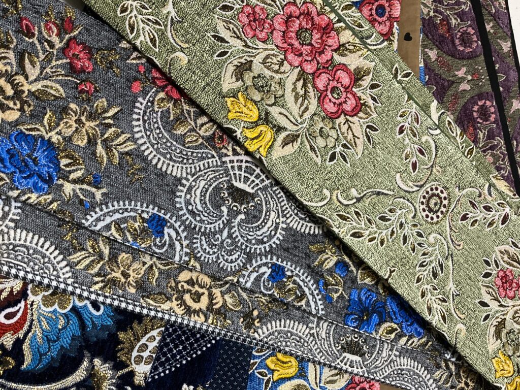 表面をレザーにしたタイプから、きりばめ風にアフリカ布をパッチワークしたタイプ、チラリと見える異国の香りにキュンとしますね。